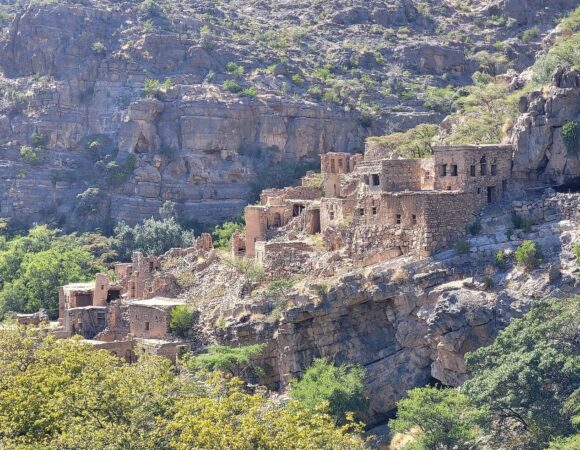 From Nizwa, we ascend to the Green Mountain – Jebel Akhdar, part of the Al Hajar mountain range.
