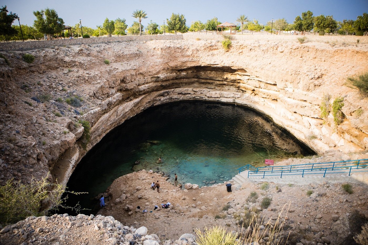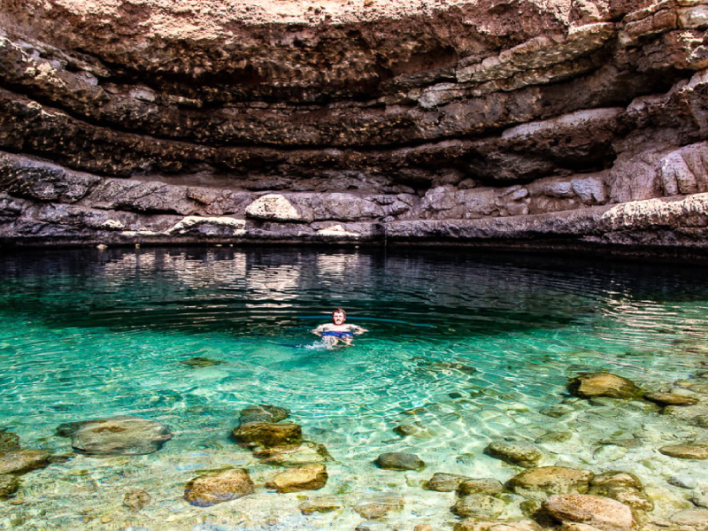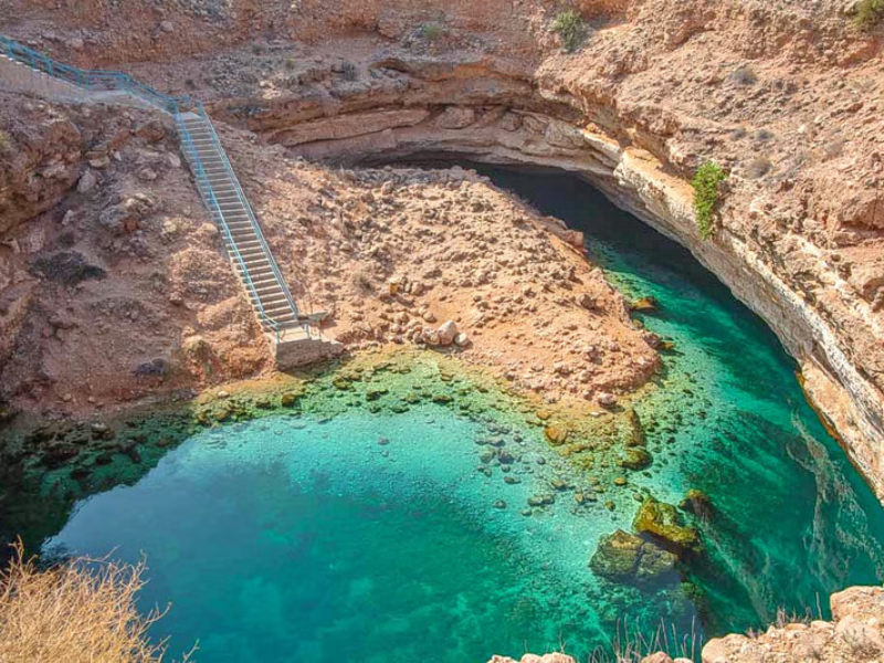 The final stop is the famous Bimmah Sinkhole, a natural wonder formed by a collapsed limestone cavern. Relax by the water, take photos, or dip your feet in the cool blue-green pool before the scenic drive back to Muscat.