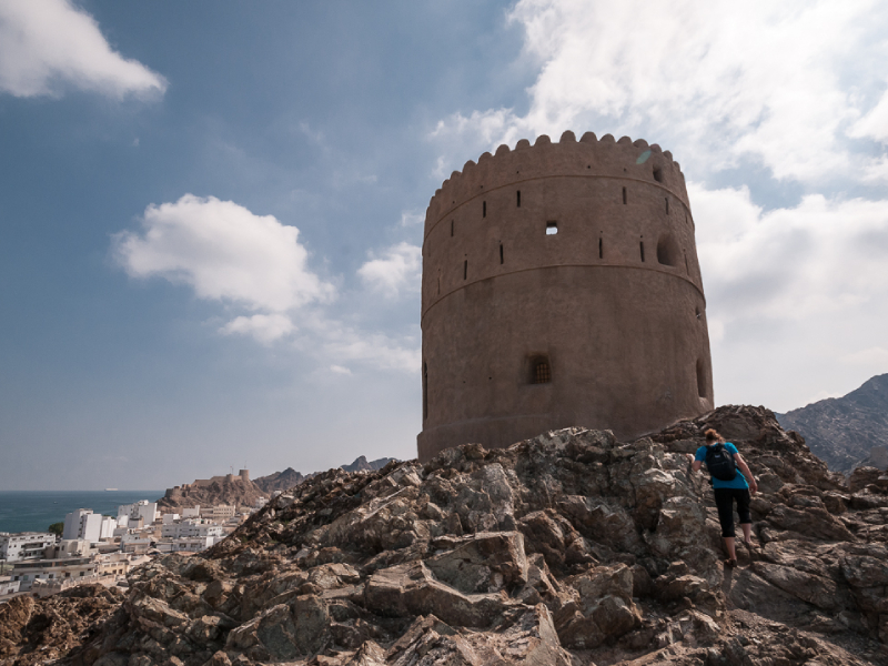 After hiking back, enjoy a hearty Omani lunch at a nearby local restaurant. The journey continues along the coast with a photo stop at Fins Beach, known for its white sand and tranquil surroundings.